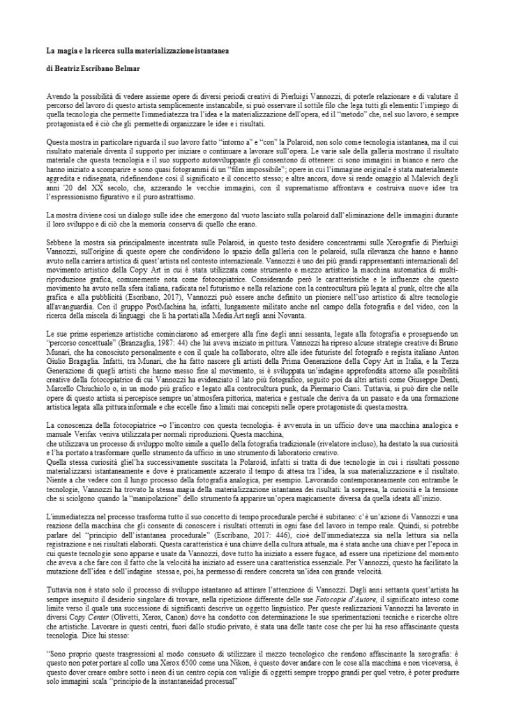 La sua autentica raffinatezza intellettuale – alimentata dalle letture e dall’appassionata frequentazione di mostre, musei, cinema e teatri – non basta a spiegare questa sensibilità, che in fondo è una forma di sensualità onnivora, di sguardo intelligente e desiderante dell’artista, sempre in cerca di rispecchiamenti in ciò che lo circonda. C’è, in lui, un felice abbandonarsi alle sorprese del visibile ma anche una posizione di rigore concettuale, che gli impone di scegliere il filtro di tecniche fotografiche dall’apparante aleatorietà per disciplinarsi, per darsi il tempo di ragionare sugli effetti della visione, e per tenere sotto controllo l’impulso di mettere a nudo le cose. La fotografia, dopo una lunga stagione di ricerca visiva fondata sulla sperimentazione radicale, per lui ora è una procedura per sublimare la contemplazione delle immagini, una ricercatezza che sconfina in declinazioni pittoriche; solo così, nel filtro della luce che sceglie per lui cosa trattenere, Vannozzi si concede di cedere alla seduzione di un’estetica dagli echi antichi, e di divertirsi con il gioco di libere associazioni, con il quale può costruire un racconto dei suoi viaggi, scegliendo strutture narrative non convenzionali.